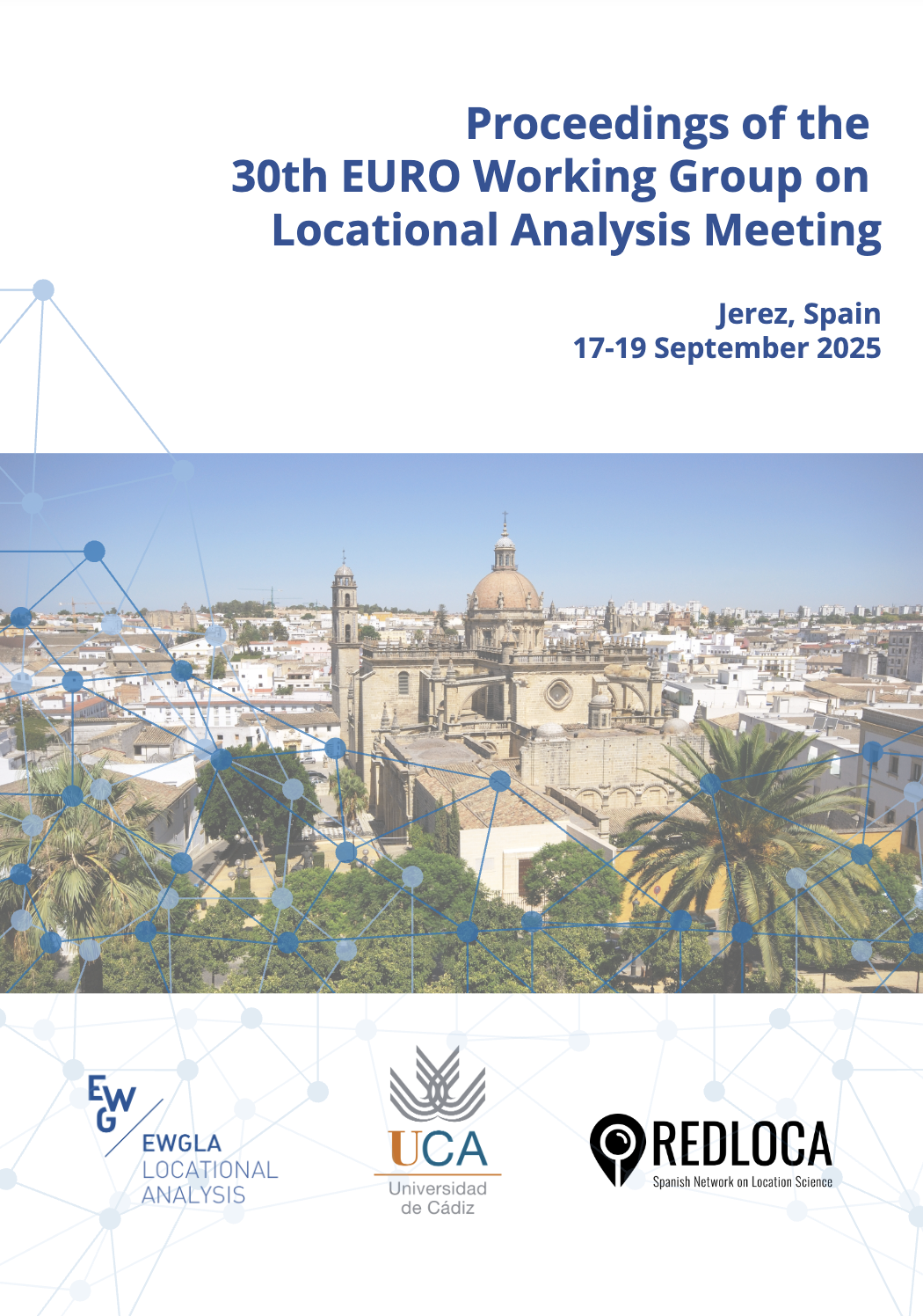 The 30th Meeting of the EURO Working Group on Locational Analysis will take place in Jerez de la Frontera (Spain) from 17 to 19 September 2025. This periodic meeting of EURO Working Group on Locational Analysis (EWGLA) gathers researchers focused on Locational Analysis and its applications.
