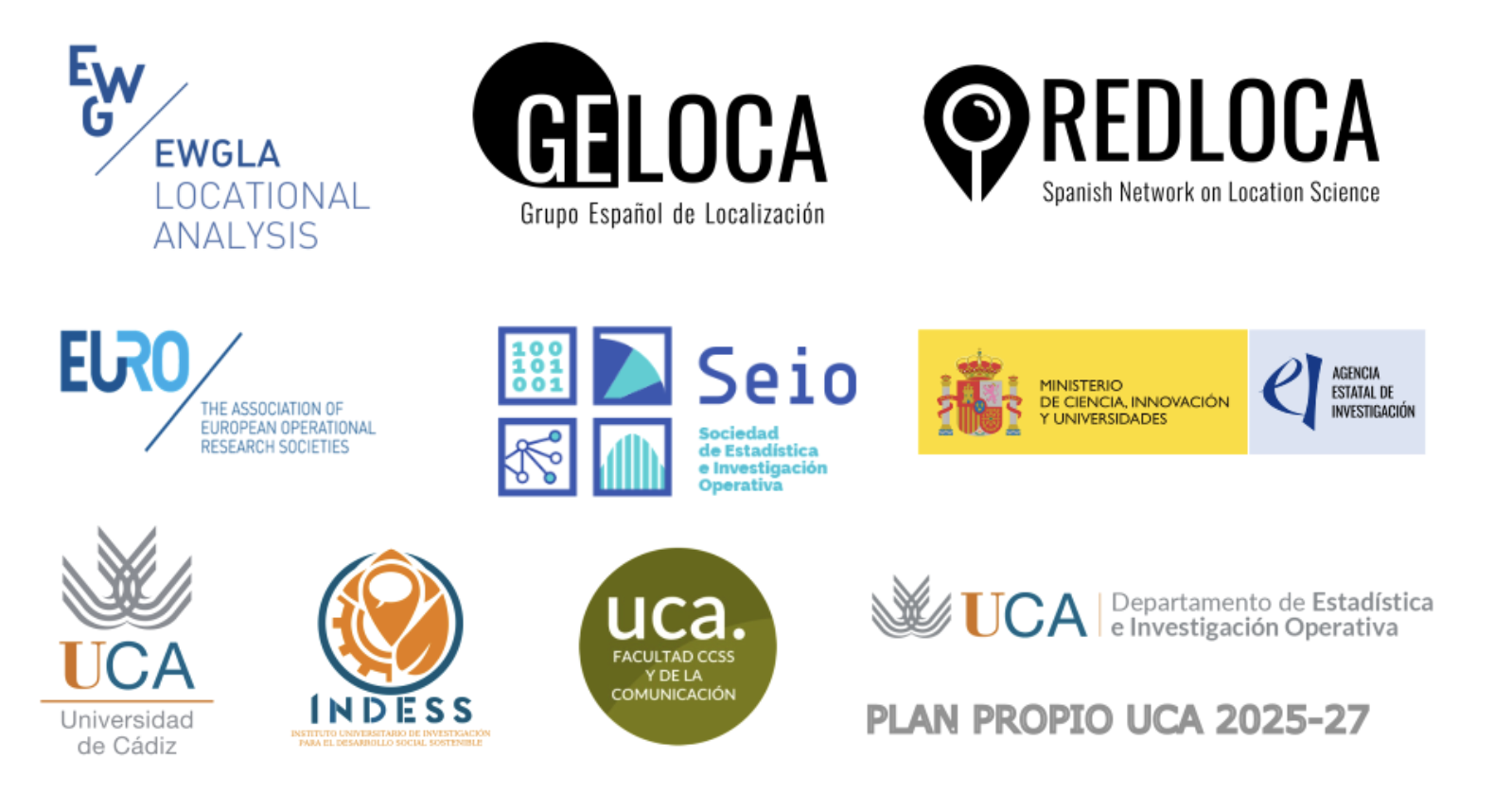 This year the meeting will be celebrated jointly with the XIV International Workshop on Locational Analysis and Related Problems (IWOLOCA). This activity is organized by the Spanish Network on Location and Related Problems (REDLOCA) and GELOCA, the Spanish Operations Research Society working group on Location.